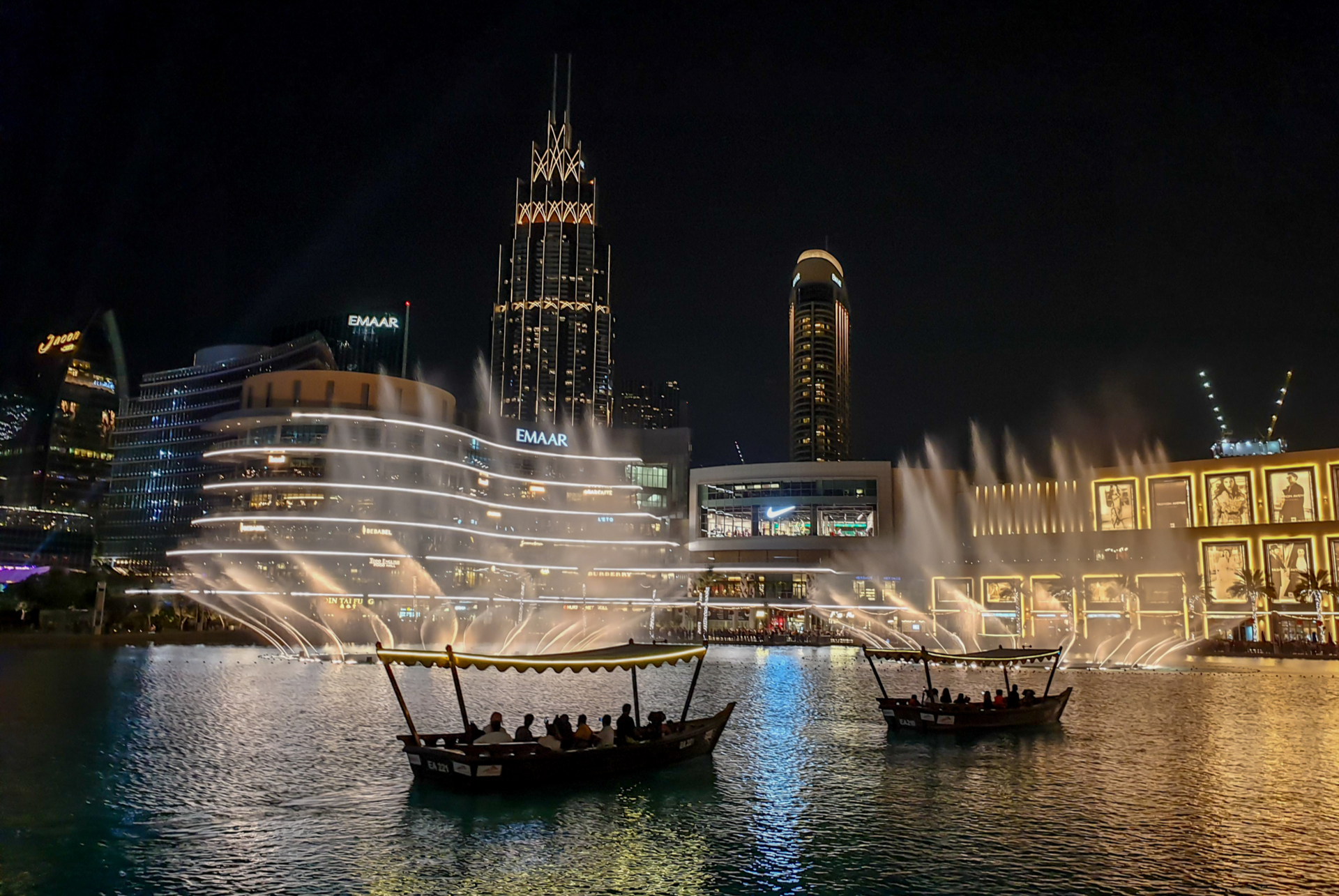 Cette mini-croisière en abra sur le lac devant le Burj Khalifa débute environ un quart d’heure avant le début du spectacle de fontaines, qui lui dure environ une dizaine de minutes. Vous monterez à bord d'une plus petite version de abra que sur Dubai Creek, pouvant cette fois accueillir jusqu'à 6 personnes (pour cette raison, mieux vaut réserver cette activité plusieurs semaines en avance) 🙂