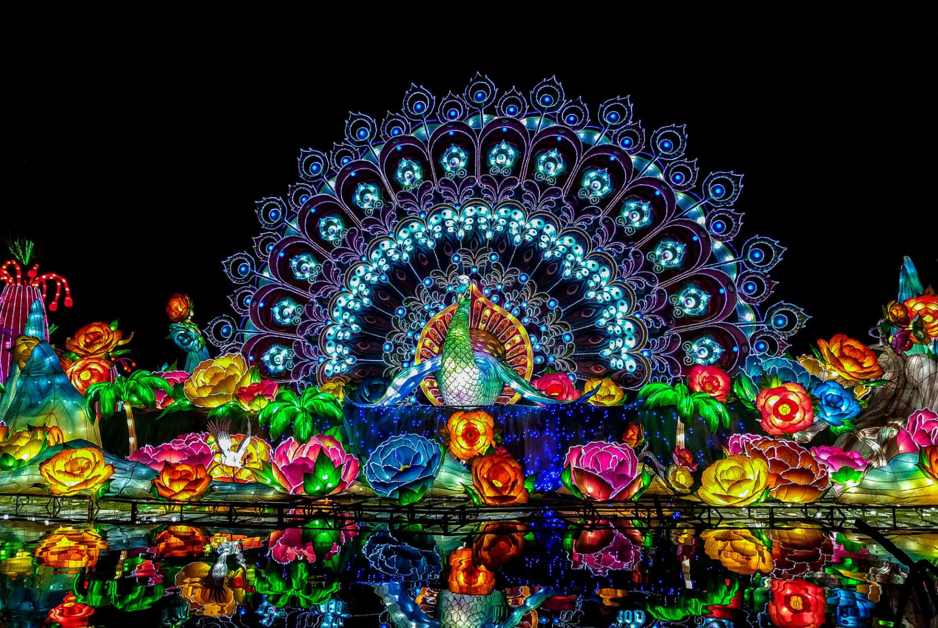 - La principale, le Glow Park, regroupe des créations réalisées par des artistes venus du monde entier. Sculptures en forme de fleur, méduses géantes, poissons volants, ou encore paon, toutes s'illuminent pour offrir un spectacle éblouissant aux spectateurs 🤩